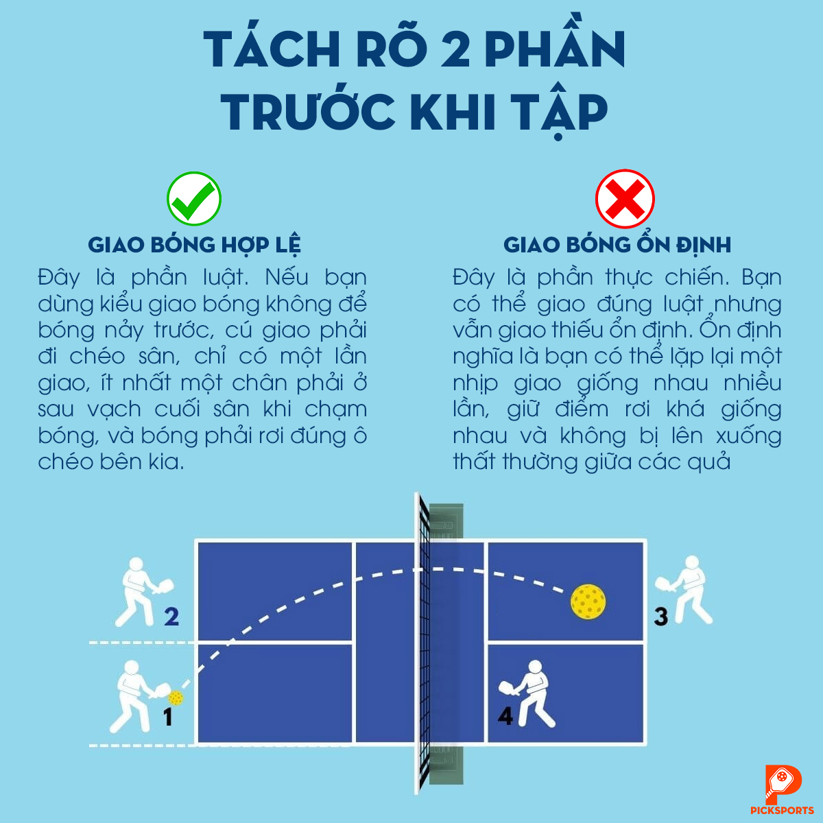 Nếu bạn muốn giao bóng ổn định hơn, mục tiêu đầu tiên không phải là giao thật mạnh. Mục tiêu đầu tiên là tăng tỷ lệ bóng vào sân, giữ được độ sâu an toàn và lặp lại được cùng một nhịp giao nhiều lần liên tiếp.