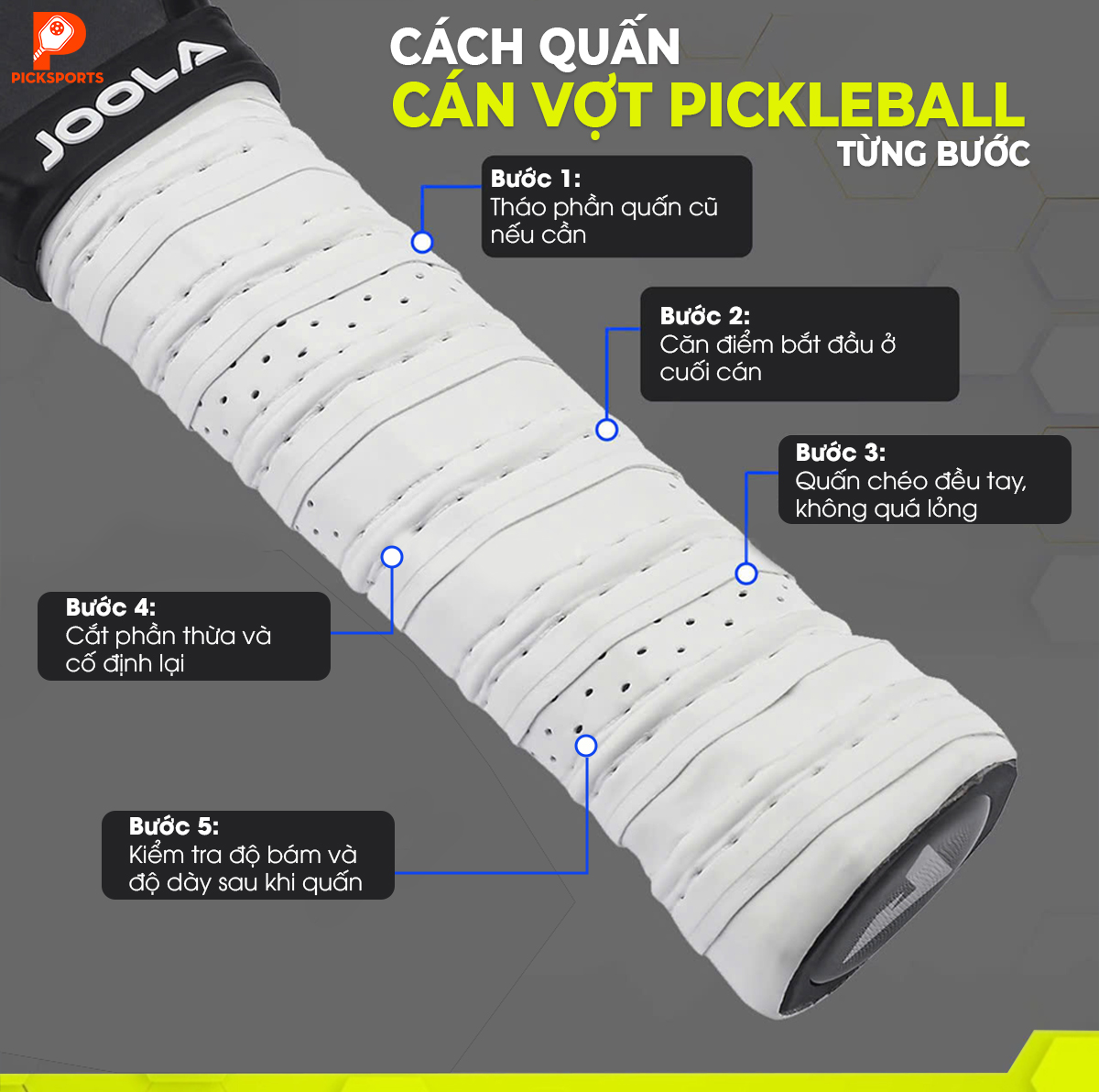 Cách quấn cán vợt Pickleball từng bước