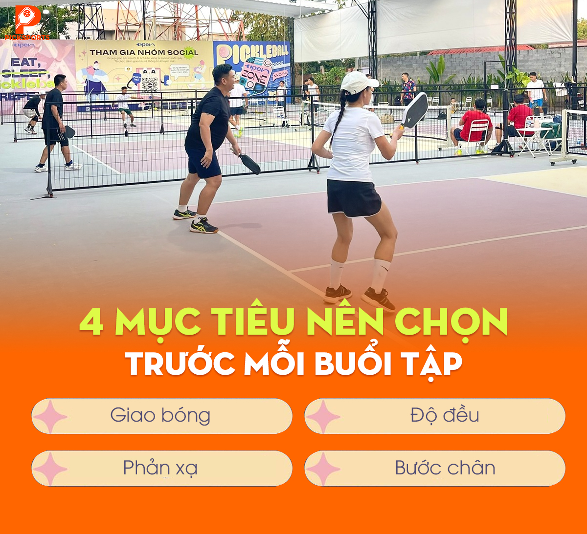 Nếu bạn muốn tiến bộ nhanh hơn, mỗi buổi tập một mình nên có một mục tiêu chính, không nên vừa giao bóng, vừa đánh tường, vừa tập chân, vừa đổi kỹ thuật liên tục trong cùng một buổi. Cách tập hiệu quả hơn là chọn đúng một nhóm kỹ năng, lặp lại đủ nhiều, rồi tự kiểm lại bằng con số hoặc ghi chú ngắn cuối buổi.