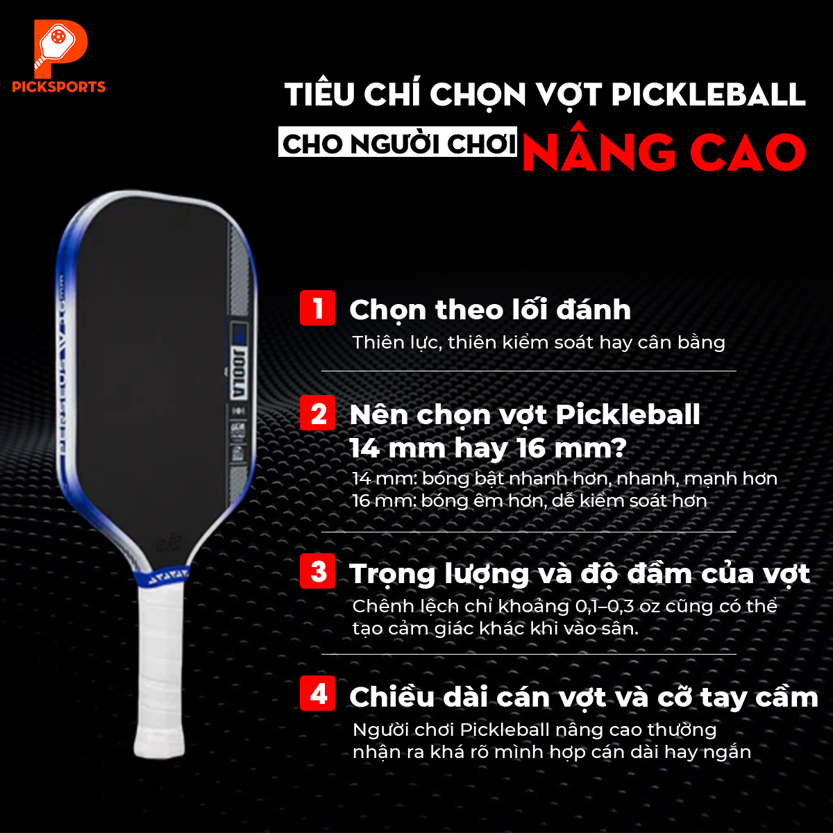2. Nên chọn vợt Pickleball 14 mm hay 16 mm?