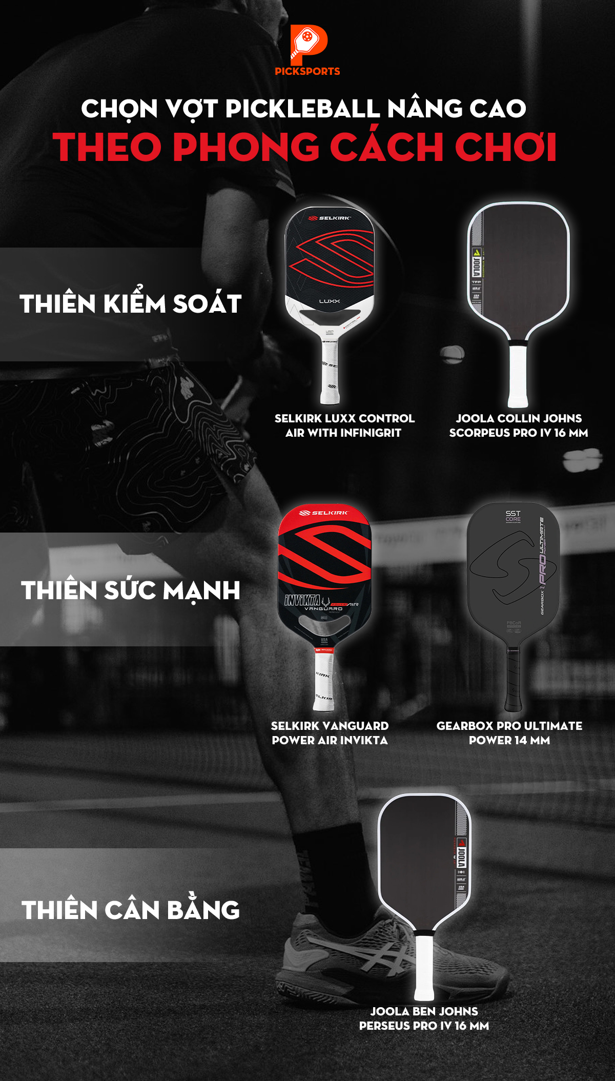 Chọn vợt Pickleball nâng cao theo phong cách chơi