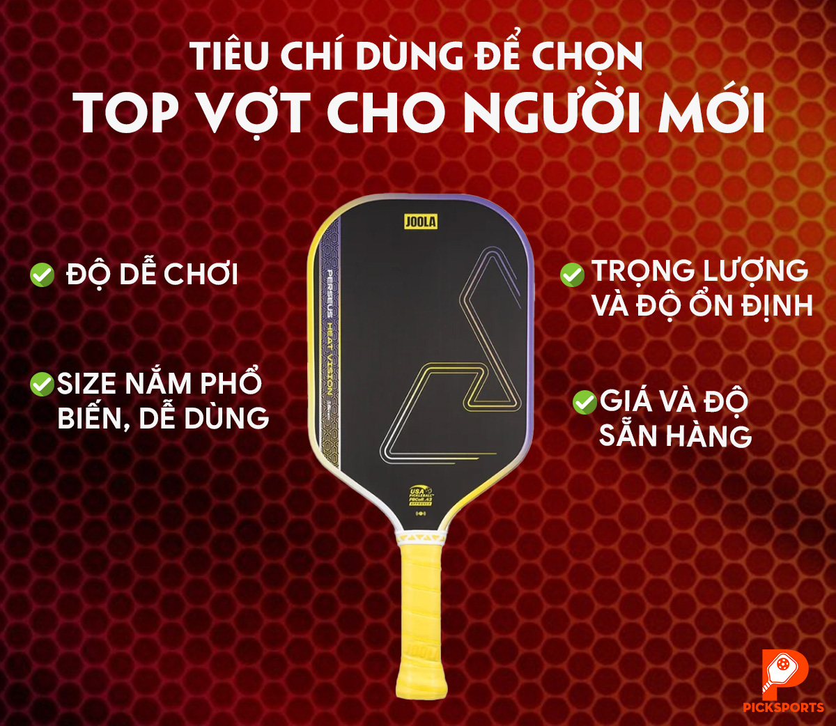 Một cây Vợt Pickleball hợp cho người mới thường có 4 điểm:
